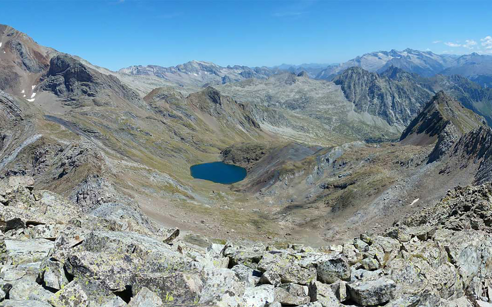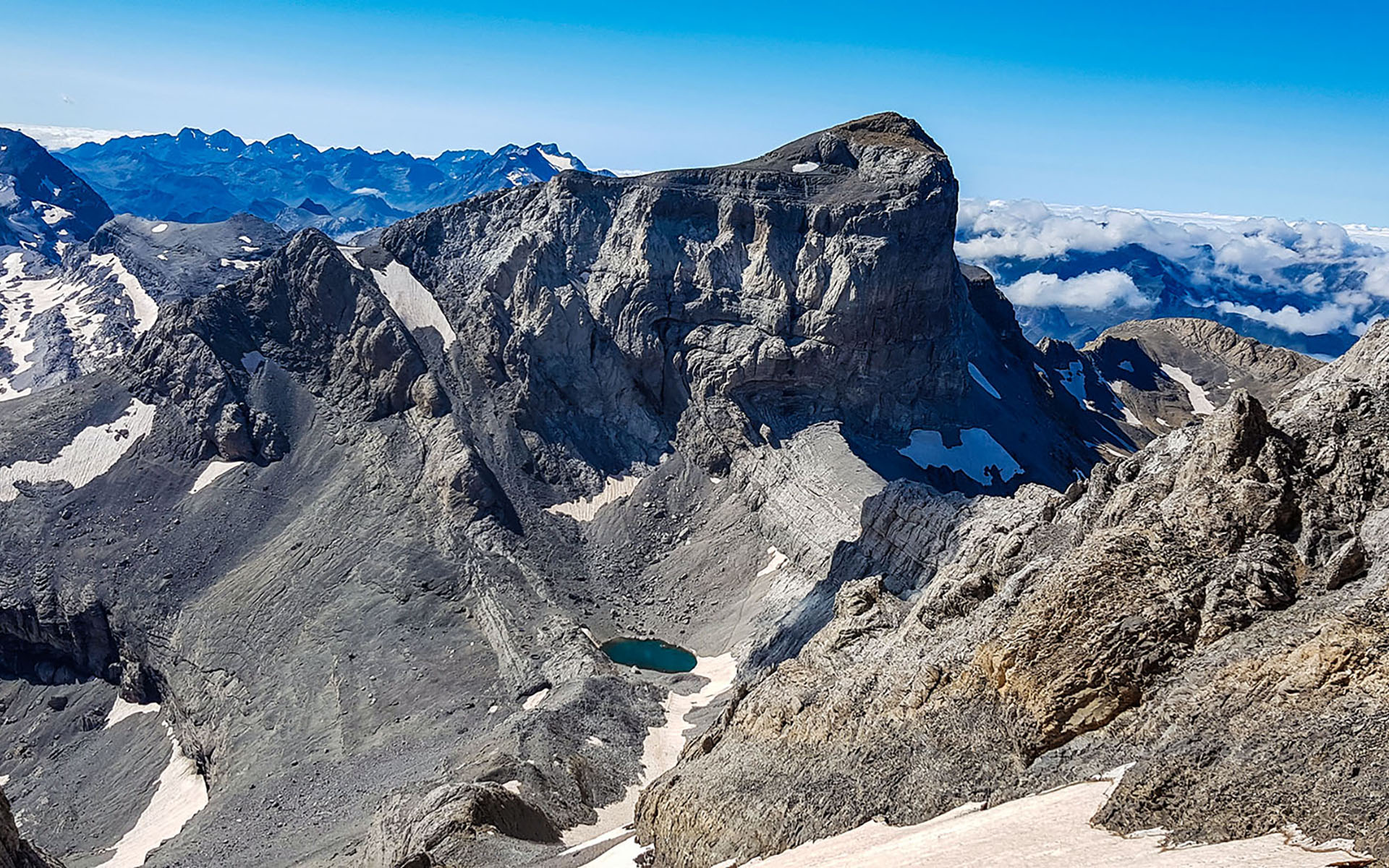 Desde el Ibón Helado nos espera la tan deseada cima sin antes realizar una fuerte y dura pendiente por la famosa Escupidera; garantizado que las vistas desde la cima de este gran macizo son espectaculares.
