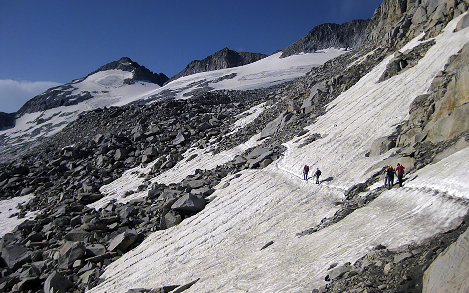 Como primer paso obligado y punto de referencia de la ruta, será el Portillón Superior a 2.893 metros, donde pasaremos por un terreno de bloques de piedra hasta adentrarnos en el glaciar.